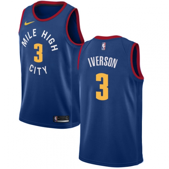 Men's Nike Denver Nuggets #3 Allen Iverson Swingman Light Blue Alternate NBA Jersey Statement Edition