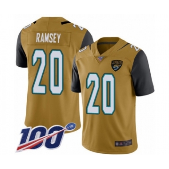 >Youth Nike Jacksonville Jaguars #20 Jalen Ramsey Limited Gold Rush Vapor Untouchable 100th Season NFL Jersey
