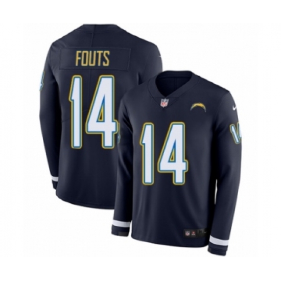 Men's Nike Los Angeles Chargers #14 Dan Fouts Limited Navy Blue Therma Long Sleeve NFL Jersey