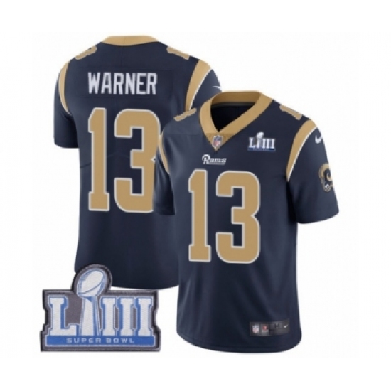 Men's Nike Los Angeles Rams #13 Kurt Warner Navy Blue Team Color Vapor Untouchable Elite Player Super Bowl LIII Bound NFL Jersey