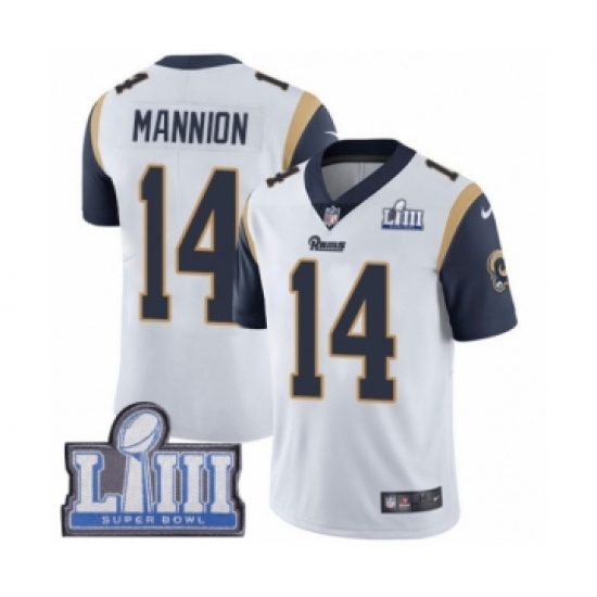 >Youth Nike Los Angeles Rams #14 Sean Mannion White Vapor Untouchable Limited Player Super Bowl LIII Bound NFL Jersey