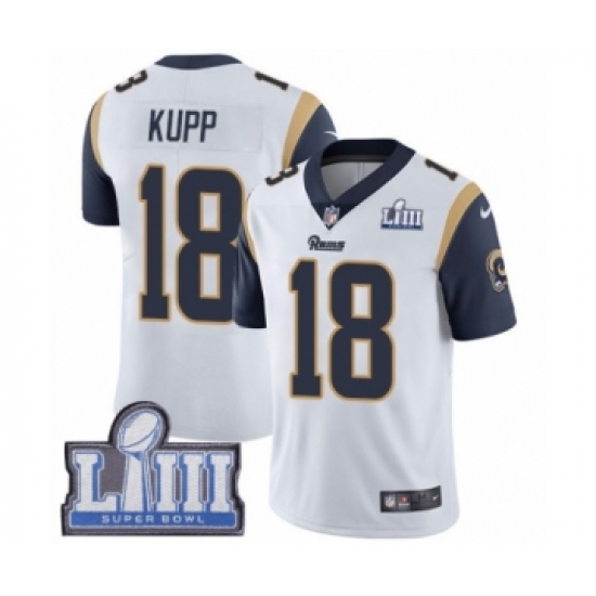 Men's Nike Los Angeles Rams #18 Cooper Kupp White Vapor Untouchable Elite Player Super Bowl LIII Bound NFL Jersey