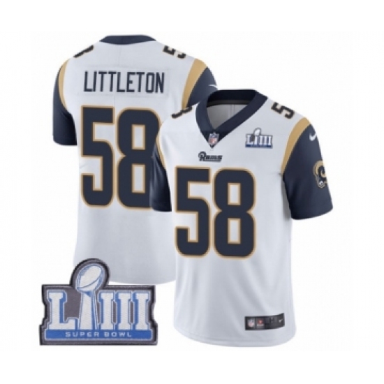 Men's Nike Los Angeles Rams #58 Cory Littleton White Vapor Untouchable Limited Player Super Bowl LIII Bound NFL Jersey