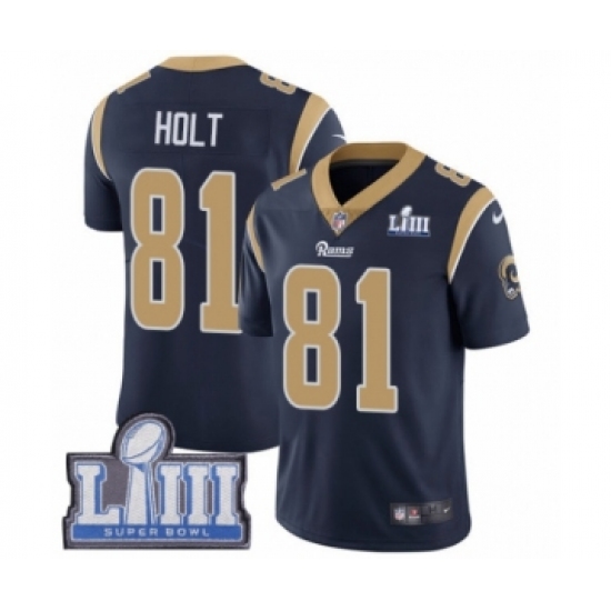 Youth Nike Los Angeles Rams #81 Torry Holt Navy Blue Team Color Vapor Untouchable Limited Player Super Bowl LIII Bound NFL Jersey