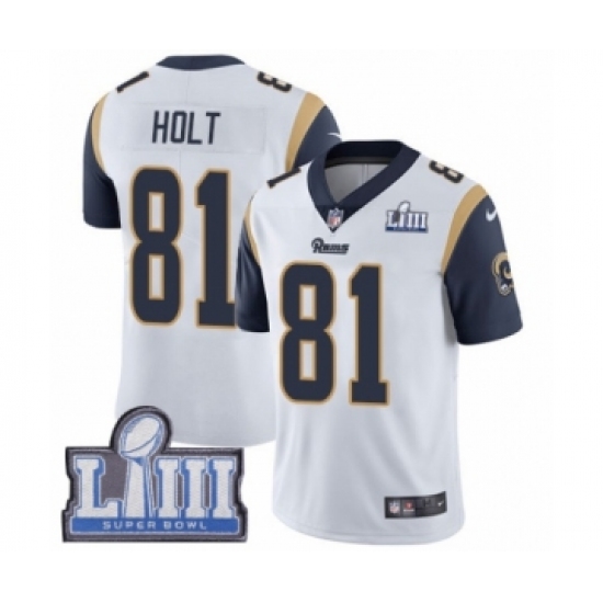 Youth Nike Los Angeles Rams #81 Torry Holt White Vapor Untouchable Limited Player Super Bowl LIII Bound NFL Jersey