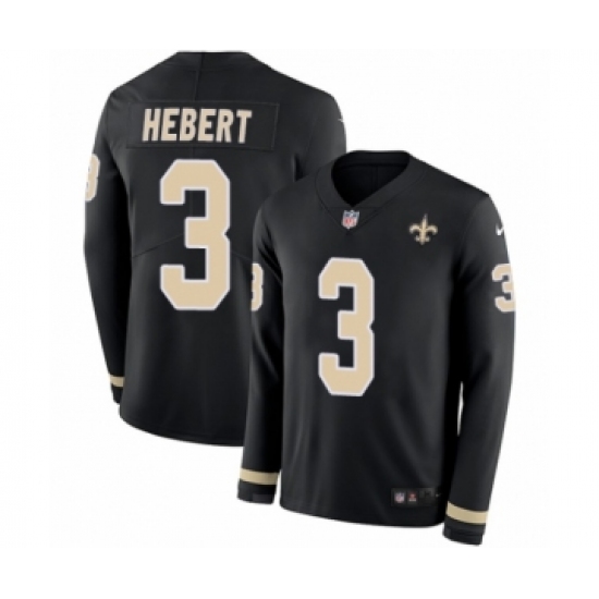 >Youth Nike New Orleans Saints #3 Bobby Hebert Limited Black Therma Long Sleeve NFL Jersey