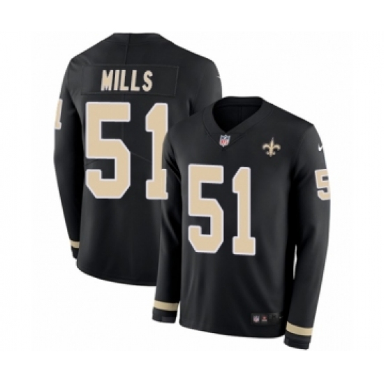 Women's Nike New Orleans Saints #51 Sam Mills Limited Black Therma Long Sleeve NFL Jersey