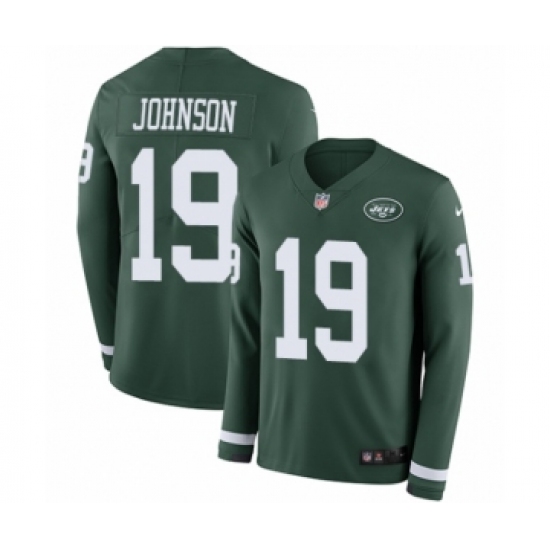 >Youth Nike New York Jets #19 Keyshawn Johnson Limited Green Therma Long Sleeve NFL Jersey