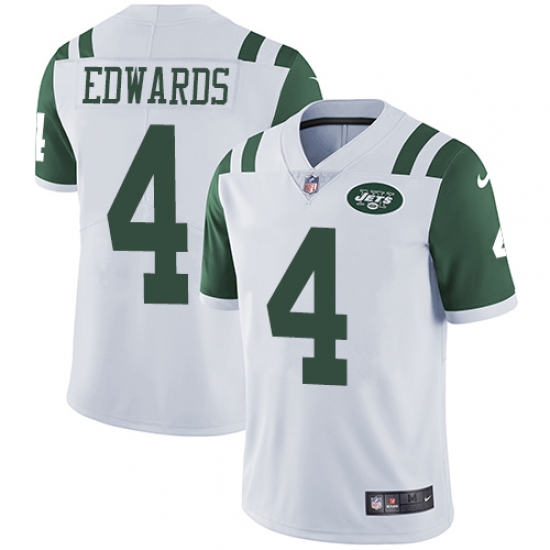 Home>NFL>New York Jets>Lac Edwards>Youth Nike New York Jets #4 Lac Edwards White Vapor Untouchable Limited Player NFL Jersey