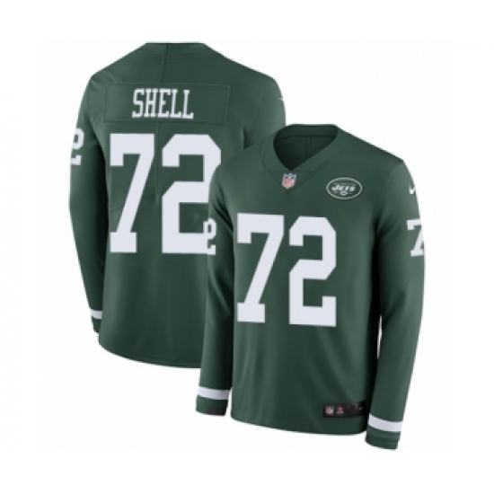 Youth Nike New York Jets #72 Brandon Shell Limited Green Therma Long Sleeve NFL Jersey