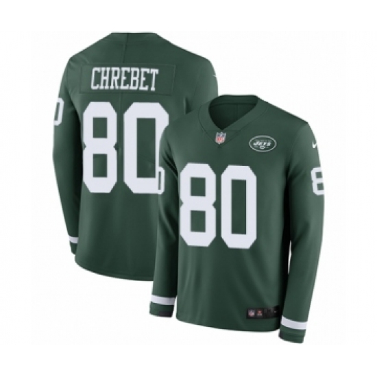 Youth Nike New York Jets #80 Wayne Chrebet Limited Green Therma Long Sleeve NFL Jersey