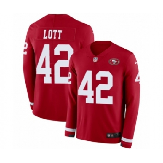 >Youth Nike San Francisco 49ers #42 Ronnie Lott Limited Red Therma Long Sleeve NFL Jersey