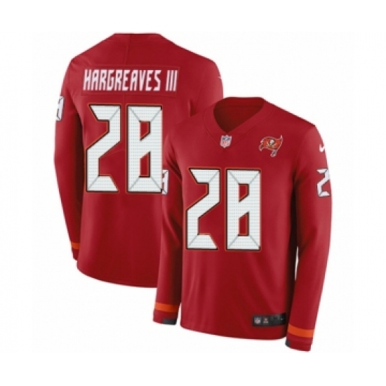 >Youth Nike Tampa Bay Buccaneers #28 Vernon Hargreaves III Limited Red Therma Long Sleeve NFL Jersey