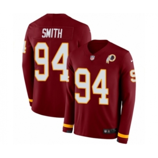>Youth Nike Washington Redskins #94 Preston Smith Limited Burgundy Therma Long Sleeve NFL Jersey