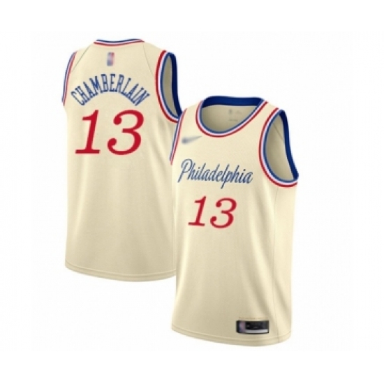 >Youth Philadelphia 76ers #13 Wilt Chamberlain Swingman Cream Basketball Jersey - 2019 20 City Edition