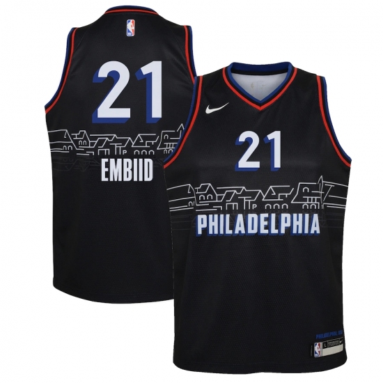 >Youth Philadelphia 76ers #21 Joel Embiid Nike Black 2020-21 Swingman Jersey