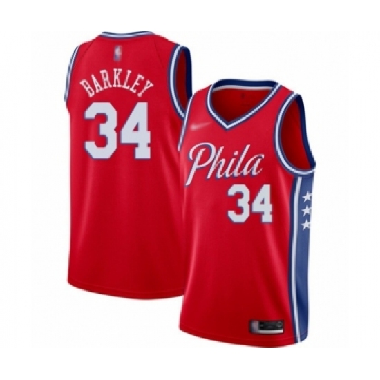 >Youth Philadelphia 76ers #34 Charles Barkley Swingman Red Finished Basketball Jersey - Statement Edition