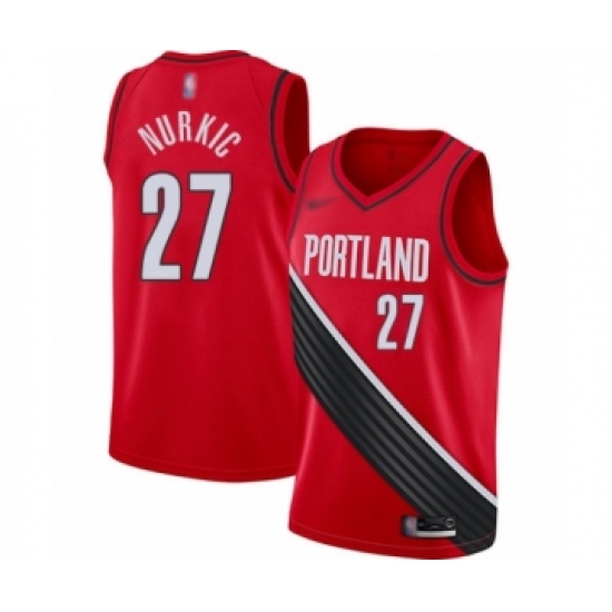 >Youth Portland Trail Blazers #27 Jusuf Nurkic Swingman Red Finished Basketball Jersey - Statement Edition