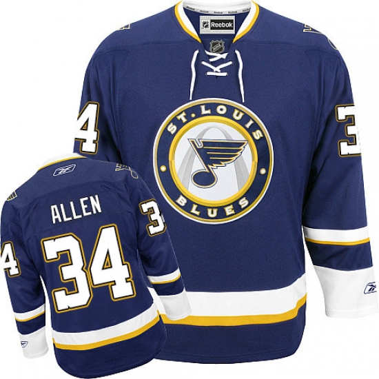 Youth Reebok St. Louis Blues #34 Jake Allen Authentic Navy Blue Third NHL Jersey