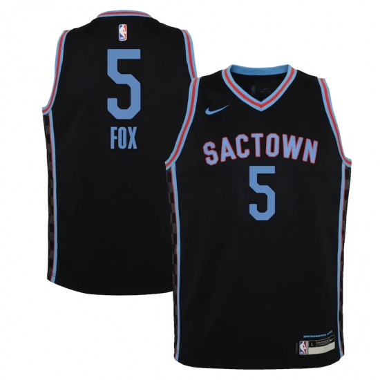 >Youth Sacramento Kings #5 De'Aaron Fox Nike Black 2020-21 Swingman Jersey