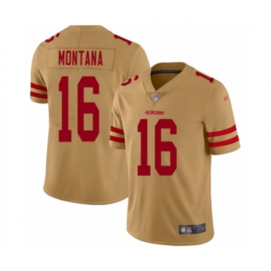 >Youth San Francisco 49ers #16 Joe Montana Limited Gold Inverted Legend Football Jersey