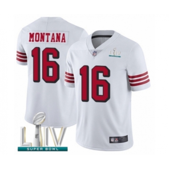 Youth San Francisco 49ers #16 Joe Montana Limited White Rush Vapor Untouchable Super Bowl LIV Bound Football Jersey