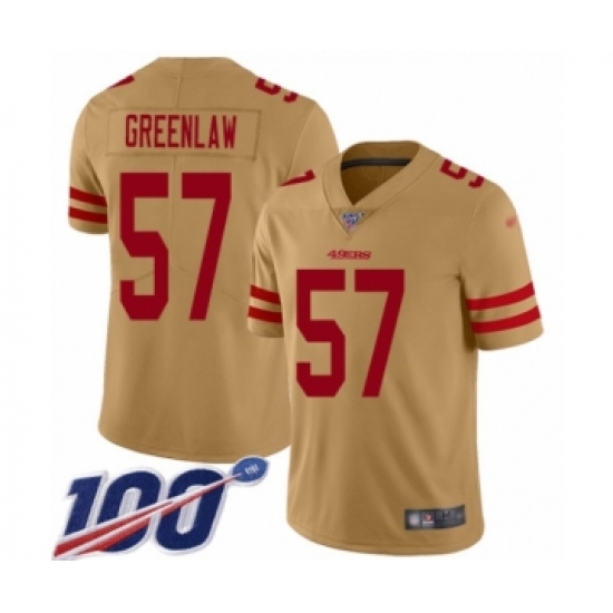 >Youth San Francisco 49ers #57 Dre Greenlaw Limited Gold Inverted Legend 100th Season Football Jersey