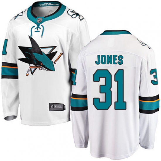 Youth San Jose Sharks #31 Martin Jones Fanatics Branded White Away Breakaway NHL Jersey