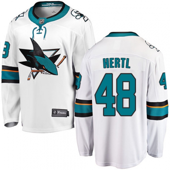 Home>NHL>San Jose Sharks>Tomas Hertl>Youth San Jose Sharks #48 Tomas Hertl Fanatics Branded White Away Breakaway NHL Jersey