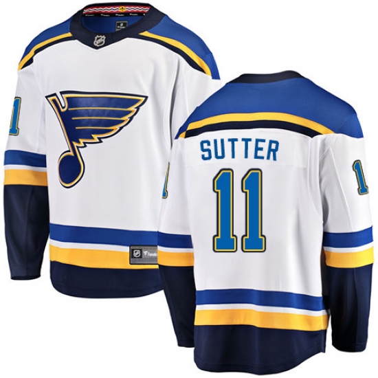 Home>NHL>St. Louis Blues>Brian Sutter>Youth St. Louis Blues #11 Brian Sutter Fanatics Branded White Away Breakaway NHL Jersey