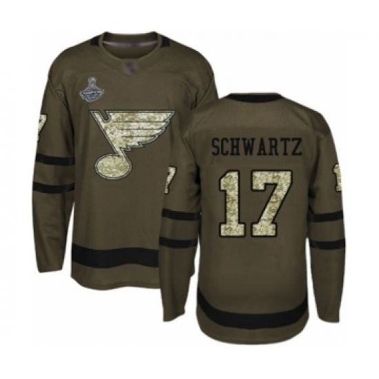 >Youth St. Louis Blues #17 Jaden Schwartz Authentic Green Salute to Service 2019 Stanley Cup Champions Hockey Jersey