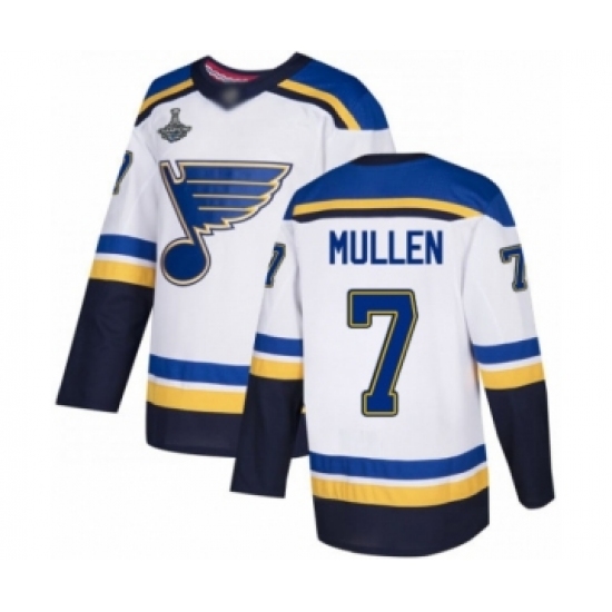 >Youth St. Louis Blues #7 Joe Mullen Authentic White Away 2019 Stanley Cup Champions Hockey Jersey