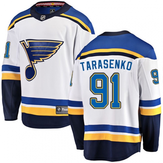 Home>NHL>St. Louis Blues>Vladimir Tarasenko>Youth St. Louis Blues #91 Vladimir Tarasenko Fanatics Branded White Away Breakaway NHL Jersey