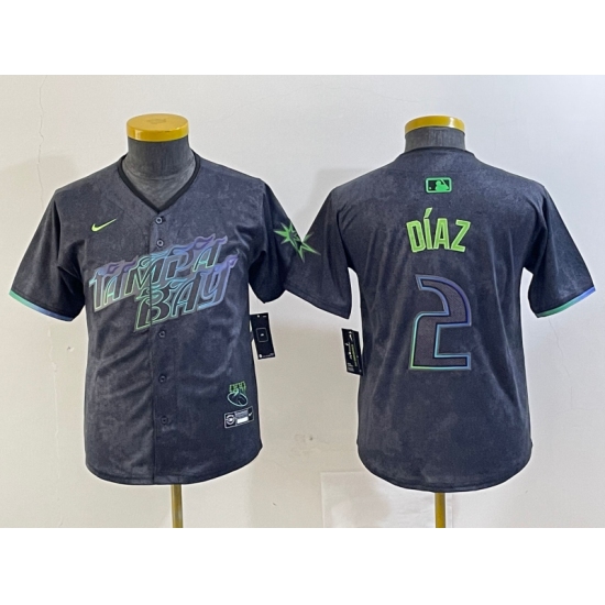 Youth Tampa Bay Rays #2 Yandy Diaz Charcoal 2024 City Connect Player Number Limited Cool Base Jersey