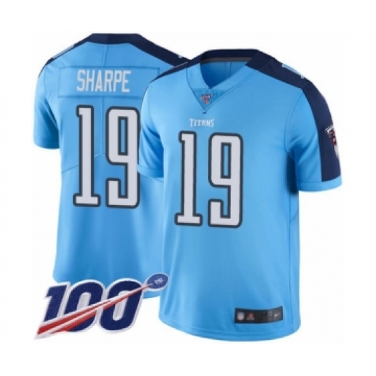 >Youth Tennessee Titans #19 Tajae Sharpe Limited Light Blue Rush Vapor Untouchable 100th Season Football Jersey