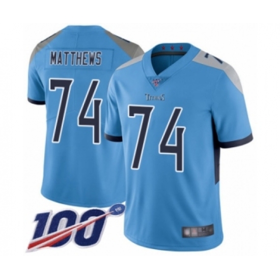 Men's Tennessee Titans #74 Bruce Matthews Light Blue Alternate Vapor Untouchable Limited Player 100th Season Football Jersey