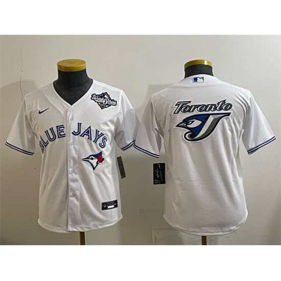Youth Toronto Blue Jays Team Big Logo White 2025 World Series Home Cool Base Stitched Baseball Jersey