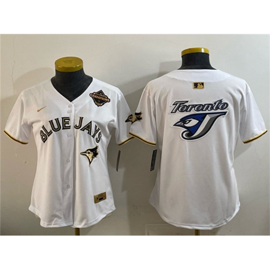 >Youth Toronto Blue Jays Team Big Logo White Gold 2025 American League Champions Limited Stitched Jersey
