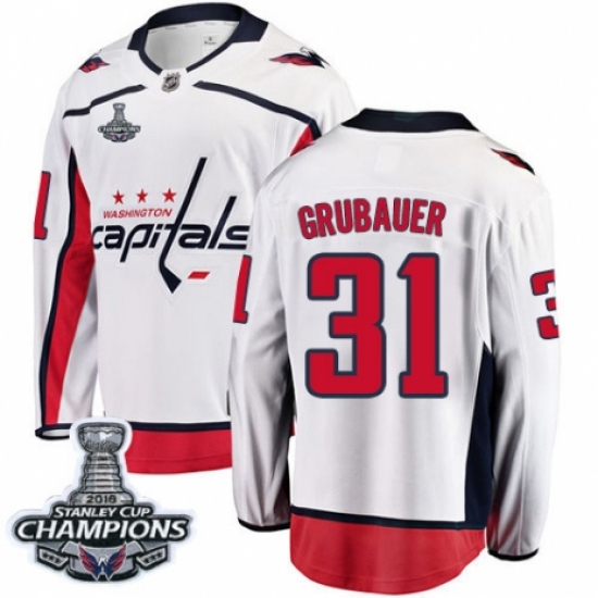 Men's Adidas Washington Capitals #31 Philipp Grubauer Authentic White Away 2018 Stanley Cup Final NHL Jersey